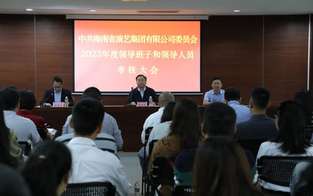3月18日上午,中共海南省演艺集团有限公司委员会2023年度领导班子和领导人员考核大会召开。考核组组长、海南大学党委常务副书记张继友作动员讲话,集团党委书记、董事长韩潮光代表领导班子作2023年度工作总结报告,集团党委副书记、总经理林师浩主持会议。全体参会人员对领导班子和领导人员进行了民主测评。