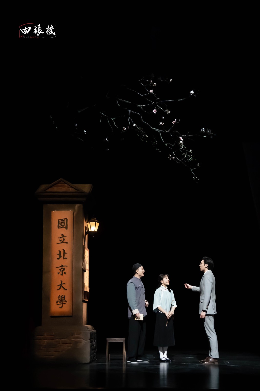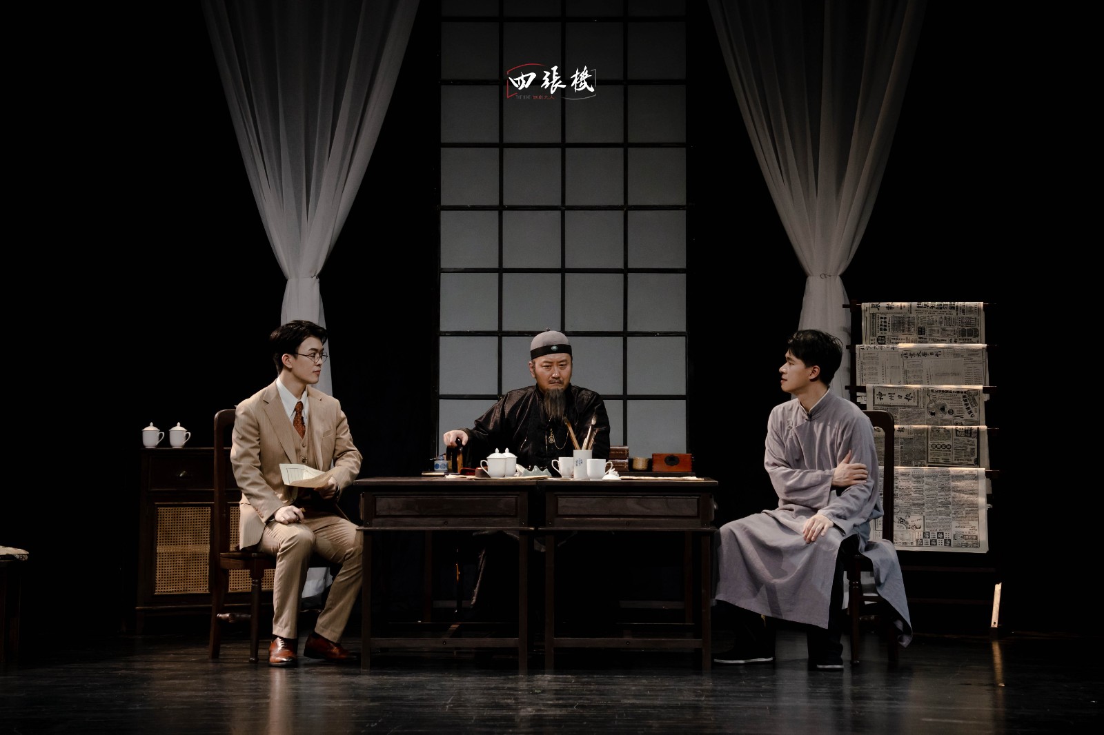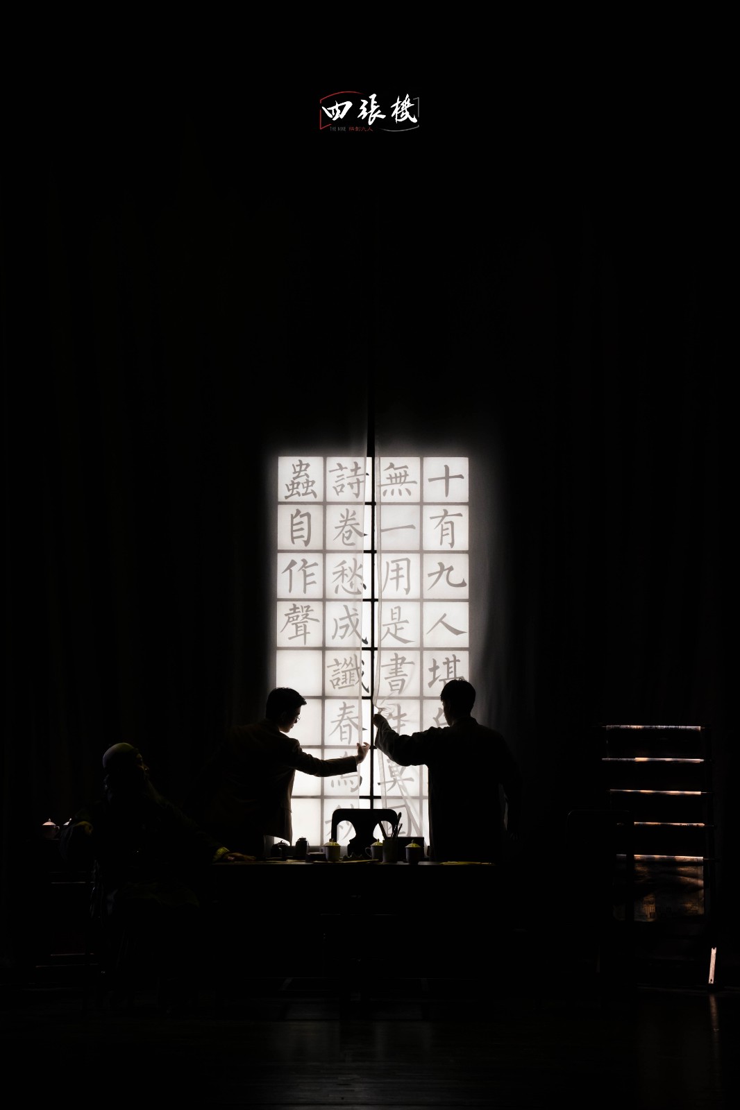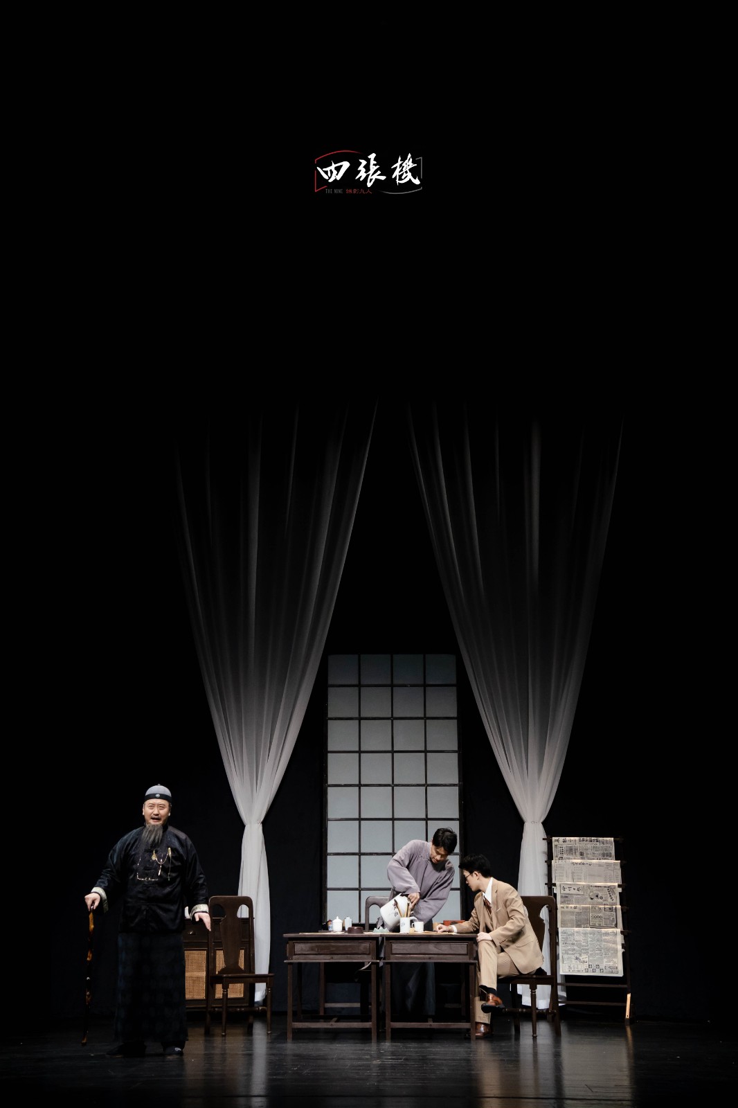 《四张机》初版剧本于2021年末公开,三位教授作为“铁三角”撑起一台戏:古鹤箴不仅是学界泰斗,更是论战中难缠的对手;卢泊安年少成名、狂飙突进,却总在恋爱问题上乱了阵脚;求三野敦厚温良,一个常被卢斥作“也行也好也同意”的和平主义者,也有坚守至最后一刻的底线价值。2023年春,打磨升级后的新版《四张机》于北京首演。除了剧本的调整外,还在舞美、灯光、道具、服装等方面进行了全方位升级,给观众带来更深的观演沉浸感和更精致的舞美体验。