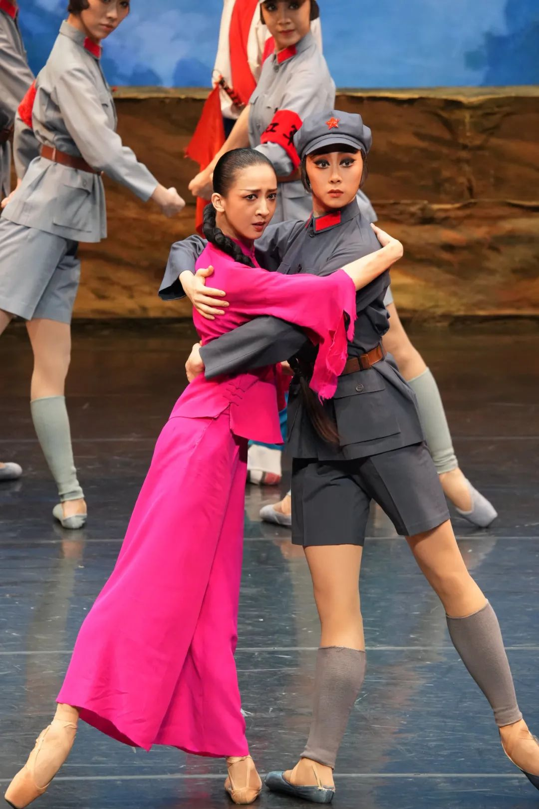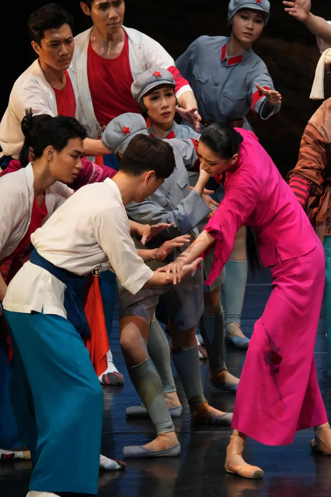 随着红色大幕缓缓拉开,一身军装打扮的“娘子军们”手拿刀枪和手榴弹,跳起经典的“射击舞、投弹舞、刺杀舞”,亮出倒踢紫金冠、掀身探海、乌龙绞柱等芭蕾绝活,瞬间点燃全场激情,带领观众重回热血峥嵘时代;而当“万泉河水清又清,我编斗笠送红军……”的熟悉旋律响起,又不禁引发全唱小声跟唱,动情之处,更引得无数观众热泪盈眶。