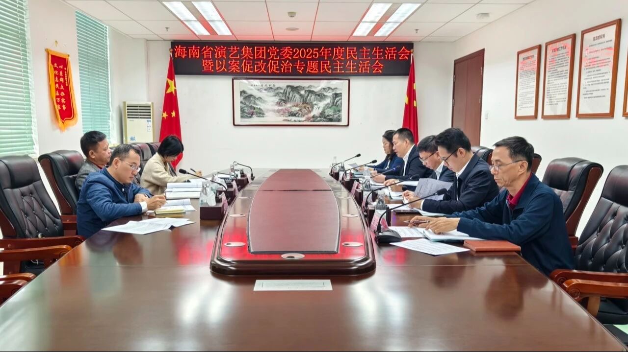 2月4日上午,海南省演艺集团党委召开2025年度民主生活会暨以案促改促治专题民主生活会。会议聚焦主题,紧密联系思想与工作实际,深入查摆问题、严肃开展批评与自我批评、明确整改方向。省纪委监委第一监督检查室二级调研员谢建华、省委人才发展局人才三处副处长陈晓琼、省文资办副主任王茂锦同志到会指导。省演艺集团党委书记、董事长韩潮光同志主持会议,全体班子成员参加会议。