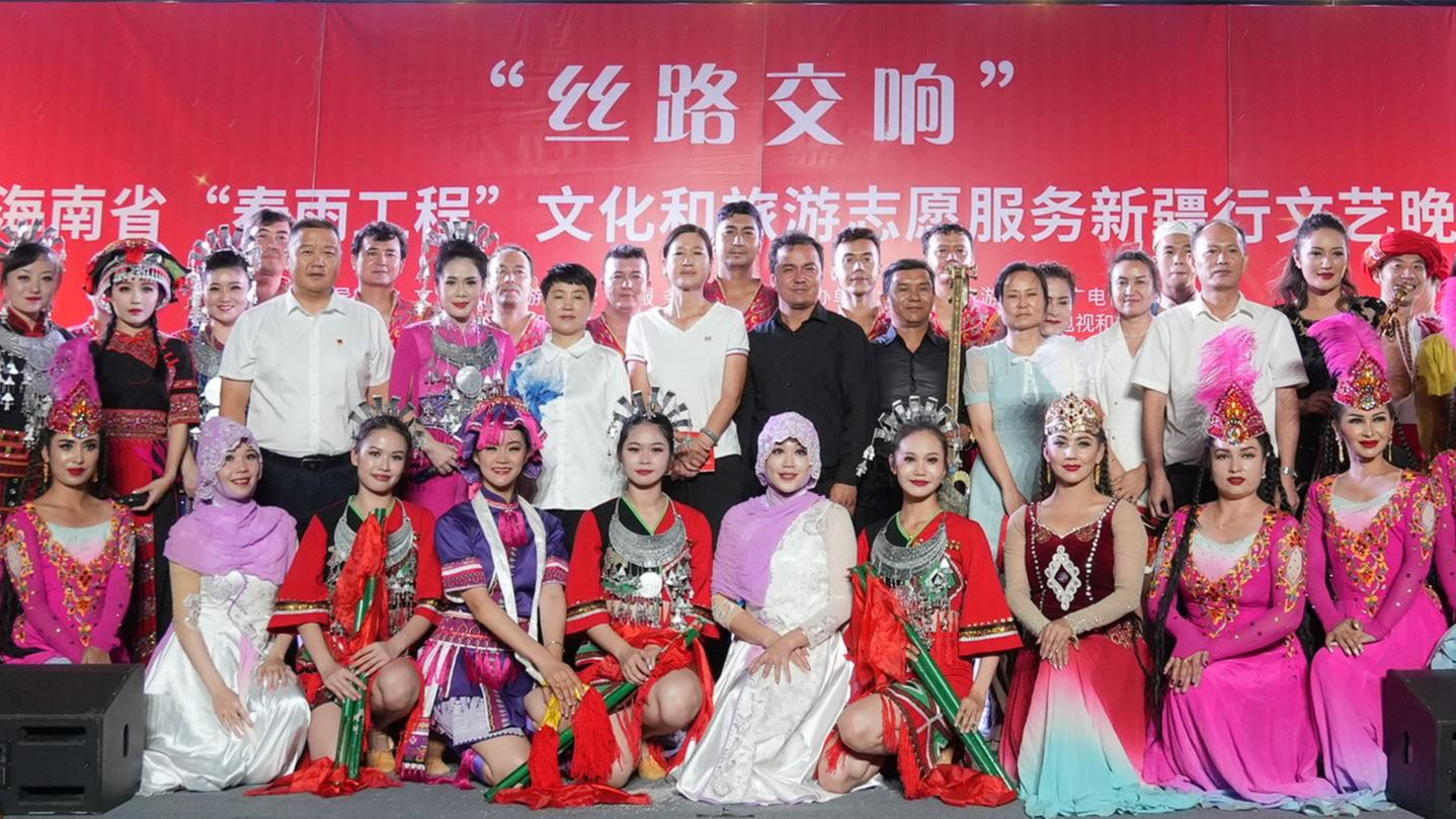“丝路情,新疆行”,7月21日—22日,“丝路交响”——海南省“春雨工程”文旅志愿者新疆行文旅交流活动在新疆喀什成功举行。海南省演艺集团旗下省民族歌舞团结合琼疆两地文化特色,与文旅志愿者们携手为喀什的市民游客朋友送去系列具有民族特色的优秀作品。