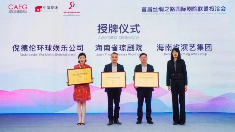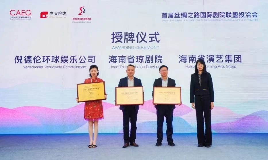 潘宁和李保宗为海南省演艺集团、海南省琼剧院、杭州演艺集团、北京人民剧场、成都交响乐团及美国倪德伦环球娱乐公司等6家丝绸之路国际剧院联盟新成员授牌。至此,丝绸之路国际剧院联盟已有来自45个国家和地区的162家成员单位,其中海外成员单位84家,国内成员单位78家(含港澳地区6家)。
